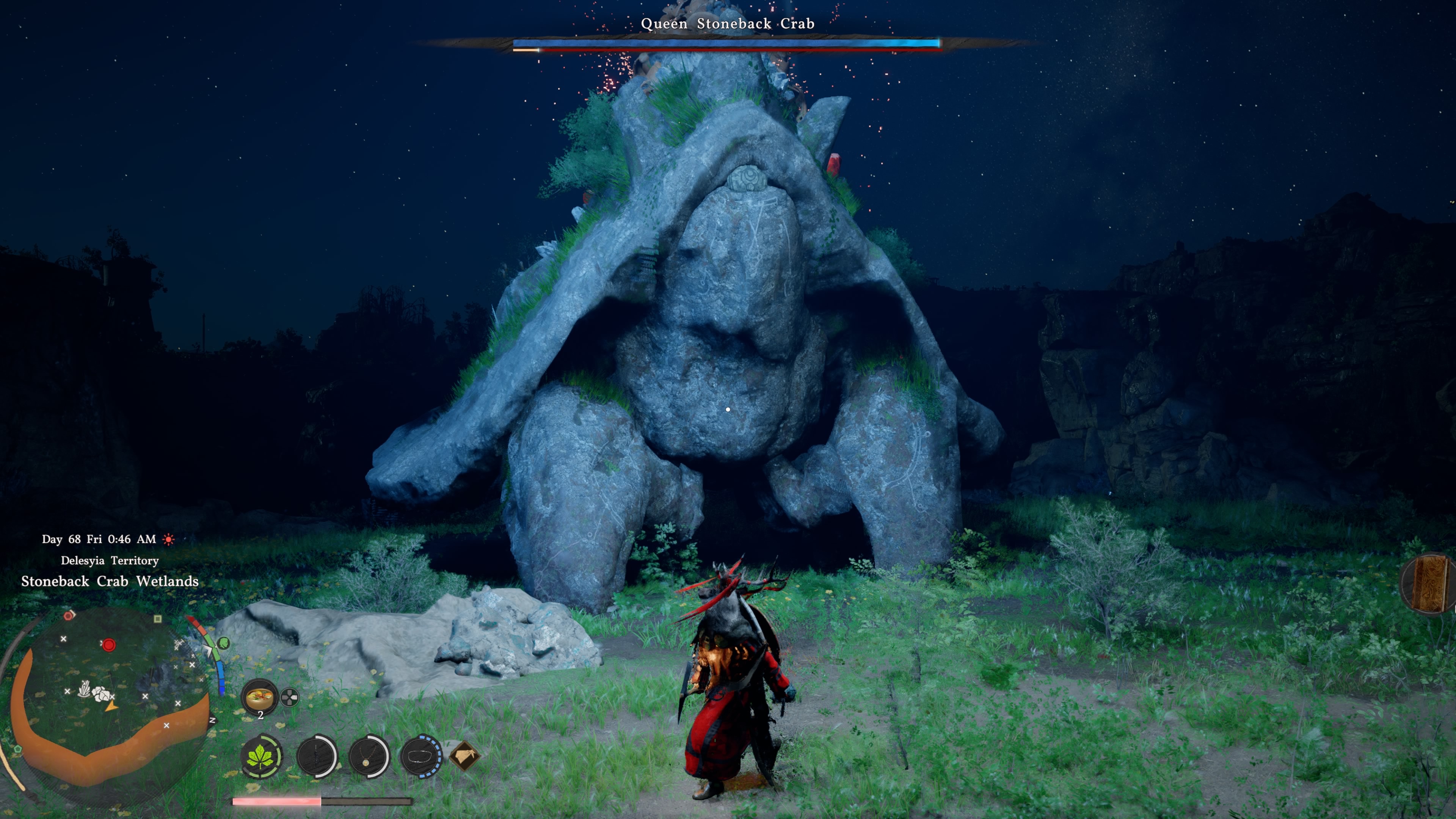 I still have nightmares about the Queen Stoneback Crab, an optional side boss who is the size of a small hill. The fight is simple but due to her size and the weak point being on her back it took me about 15 minutes to complete. She consistently bucked me off her back and forced me to climb up and restart the process each time. This annoyance wasn’t a dealbreaker, but it does highlight Crimson Desert‘s most glaring issue: clunkiness.