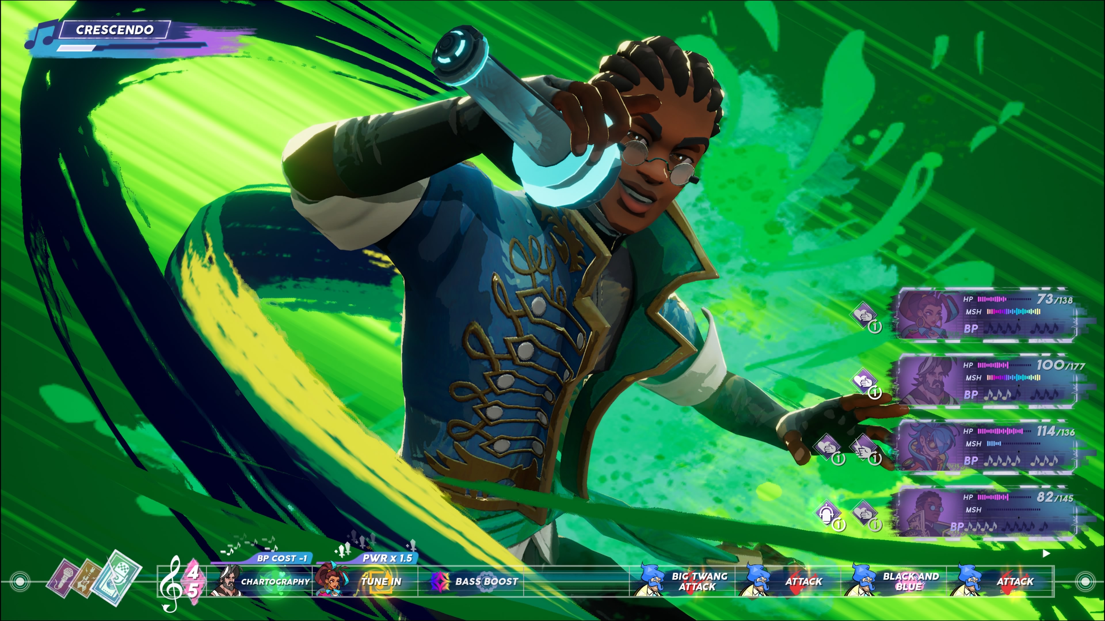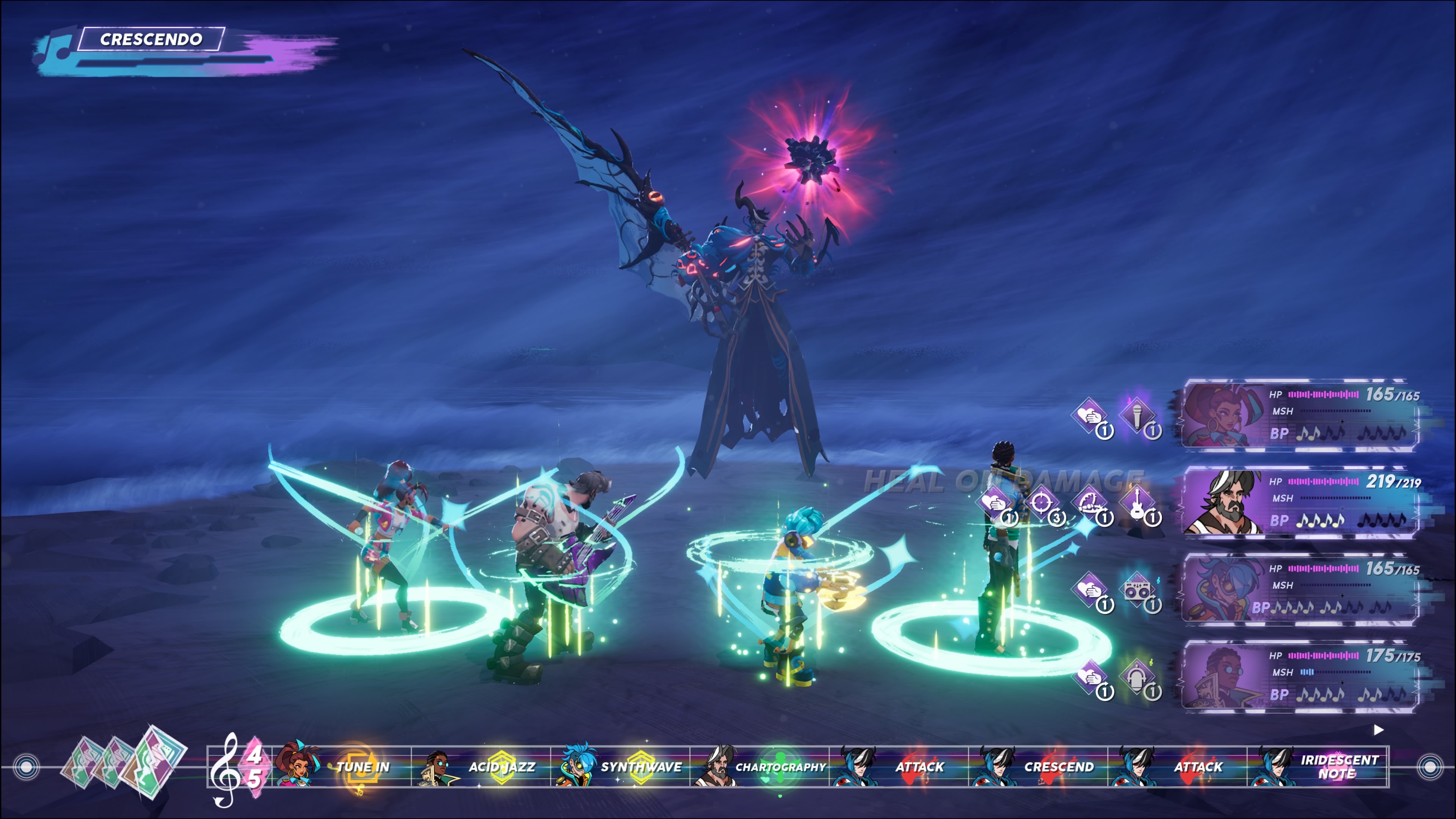 *Tip: Bosses become a lot stronger as the CRESCENDO bar fills up over time. Take risks early before they power up and play more conservatively later into the fight, so they don’t wipe out your party.